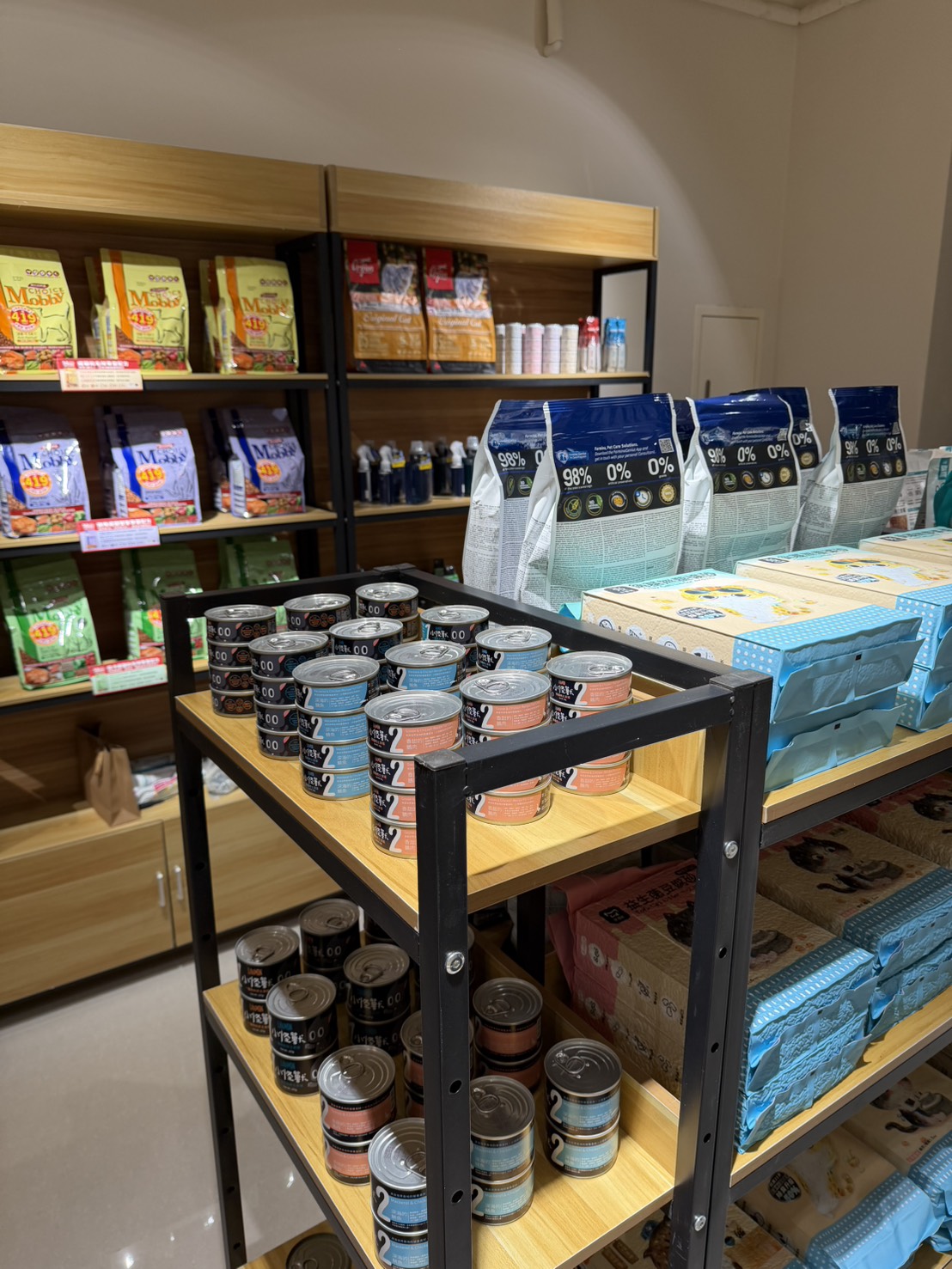 現場陳列店長精挑細選的商品,包括飼料、貓砂、清潔用品等等,我們以最優惠的價格,讓主人們能一站購足。